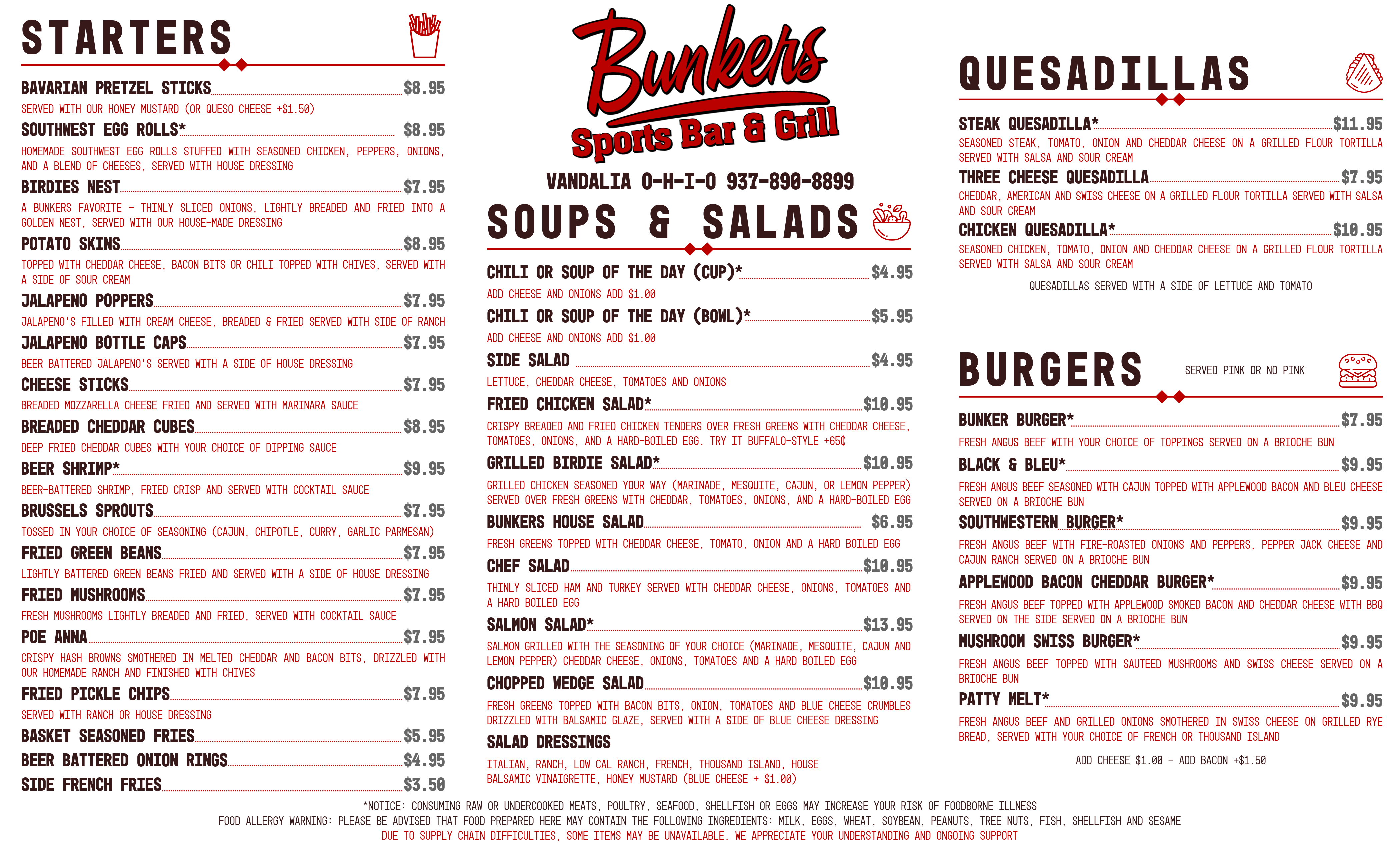 Bunkers Sports Bar & Grill > Menu