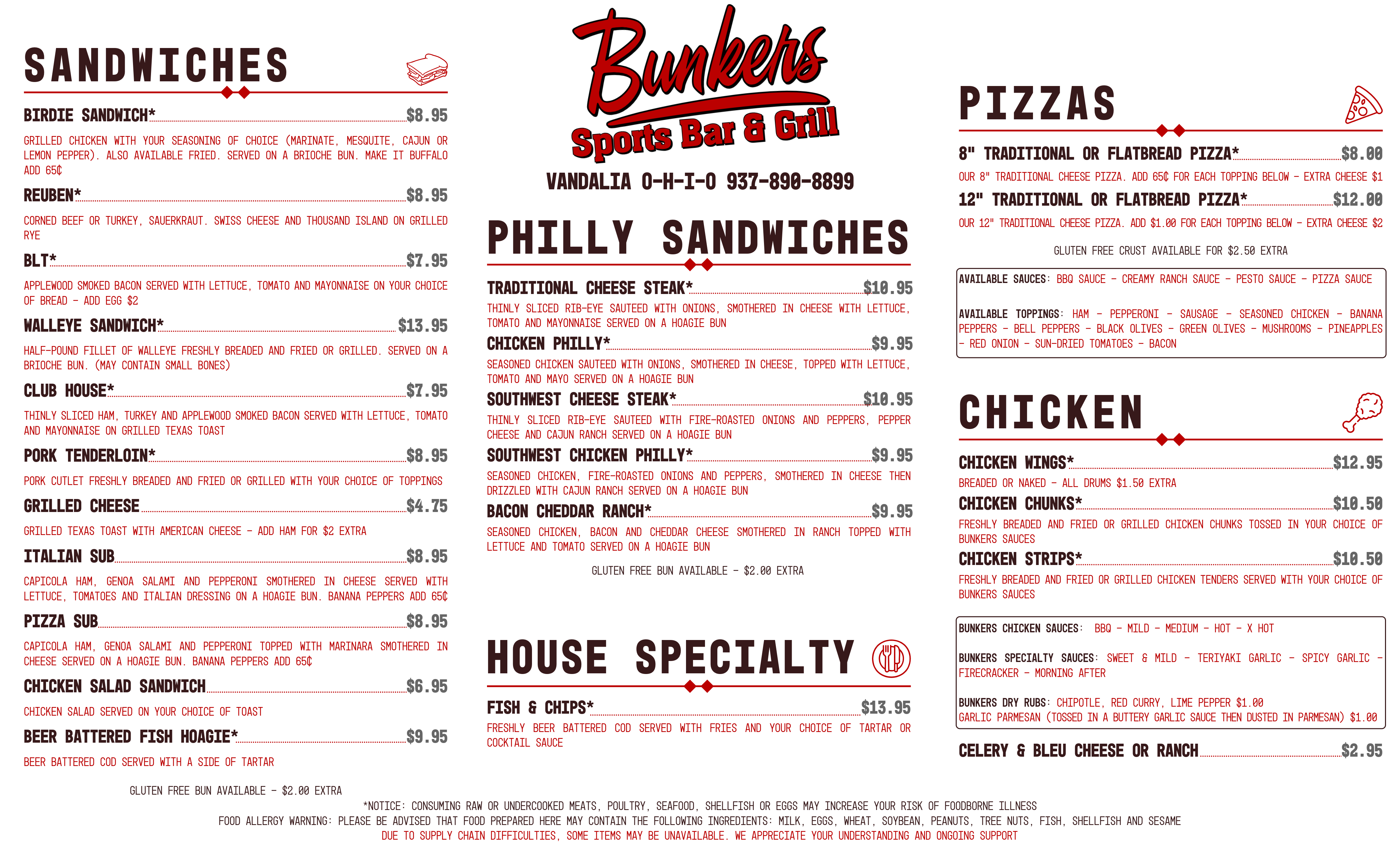 Bunkers Sports Bar & Grill > Menu